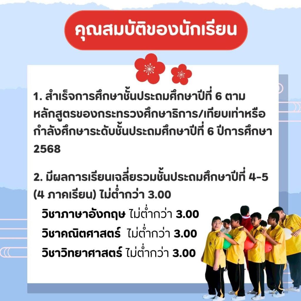 ประชาสัมพันธ์อีกครั้ง กำหนดการและหลักเกณฑ์การรับสมัครนักเรียนชั้นมัธยมศึกษาปีที่ 1 ปีการศึกษา 2569 ห้องเรียนพิเศษ MEP